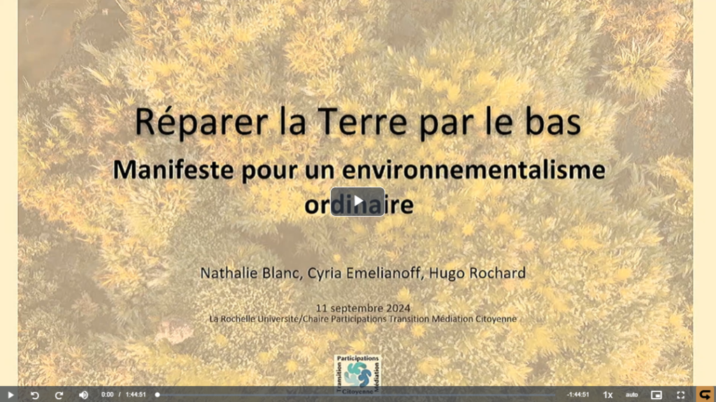 Présentation de l’ouvrage Réparer la Terre par le bas: Manifeste pour un environnementalisme ordinaire puis discussions